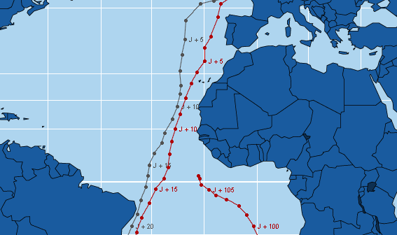 La position sur la carte est définie à partir d'un point établi à heure fixe et transmis quotidiennement par VDH. A défaut de transmission ce point pourra être déterminé par les relevés Argos. Jean Luc Van Den Heede a tracé une route théorique et fixé arbitrairement des points de passage qui permettent de déterminer la distance parcourue en 24h et la distance restant à parcourir. VDH calcule lui-même quotidiennement l'écart en jour entre sa position et celle de Philippe Monnet.