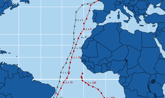 La position sur la carte est définie à partir d'un point établi à heure fixe et transmis quotidiennement par VDH. A défaut de transmission ce point pourra être déterminé par les relevés Argos. Jean Luc Van Den Heede a tracé une route théorique et fixé arbitrairement des points de passage qui permettent de déterminer la distance parcourue en 24h et la distance restant à parcourir. VDH calcule lui-même quotidiennement l'écart en jour entre sa position et celle de Philippe Monnet.