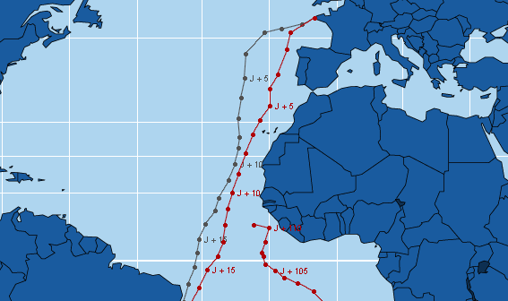 La position sur la carte est définie à partir d'un point établi à heure fixe et transmis quotidiennement par VDH. A défaut de transmission ce point pourra être déterminé par les relevés Argos. Jean Luc Van Den Heede a tracé une route théorique et fixé arbitrairement des points de passage qui permettent de déterminer la distance parcourue en 24h et la distance restant à parcourir. VDH calcule lui-même quotidiennement l'écart en jour entre sa position et celle de Philippe Monnet.