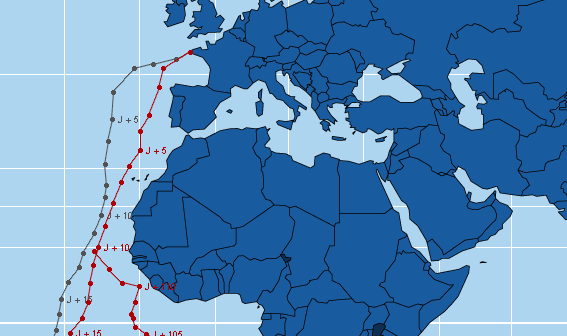 La position sur la carte est définie à partir d'un point établi à heure fixe et transmis quotidiennement par VDH. A défaut de transmission ce point pourra être déterminé par les relevés Argos. Jean Luc Van Den Heede a tracé une route théorique et fixé arbitrairement des points de passage qui permettent de déterminer la distance parcourue en 24h et la distance restant à parcourir. VDH calcule lui-même quotidiennement l'écart en jour entre sa position et celle de Philippe Monnet.