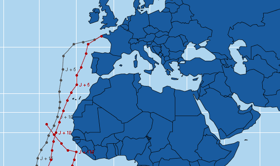 La position sur la carte est définie à partir d'un point établi à heure fixe et transmis quotidiennement par VDH. A défaut de transmission ce point pourra être déterminé par les relevés Argos. Jean Luc Van Den Heede a tracé une route théorique et fixé arbitrairement des points de passage qui permettent de déterminer la distance parcourue en 24h et la distance restant à parcourir. VDH calcule lui-même quotidiennement l'écart en jour entre sa position et celle de Philippe Monnet.