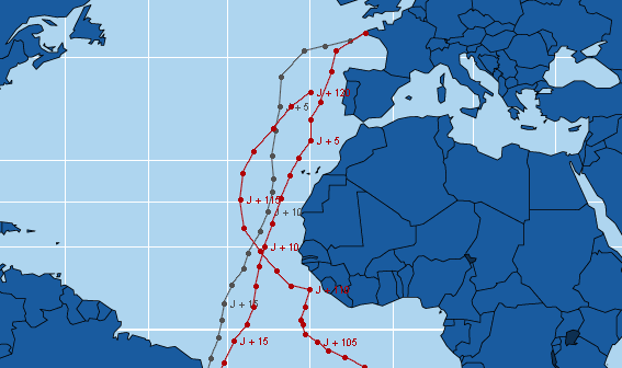 (jour précédent <) Positions du samedi 6 mars 2004 - Départ +120 jours (> jour suivant)
