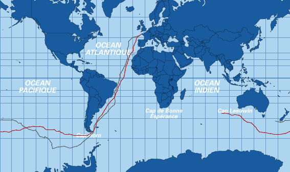 La position sur la carte est définie à partir d'un point établi à heure fixe et transmis quotidiennement par VDH. A défaut de transmission ce point pourra être déterminé par les relevés Argos. Jean Luc Van Den Heede a tracé une route théorique et fixé arbitrairement des points de passage qui permettent de déterminer la distance parcourue en 24h et la distance restant à parcourir. VDH calcule lui-même quotidiennement l'écart en jour entre sa position et celle de Philippe Monnet.